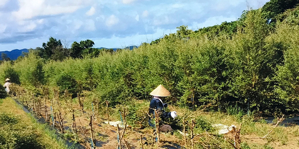 苗は、1年で1.5mほど成長し、その後年に2回~3回収獲できます。うたきの杜の畑は、農薬や化学肥料は不使用の栽培で、完全な循環型です。